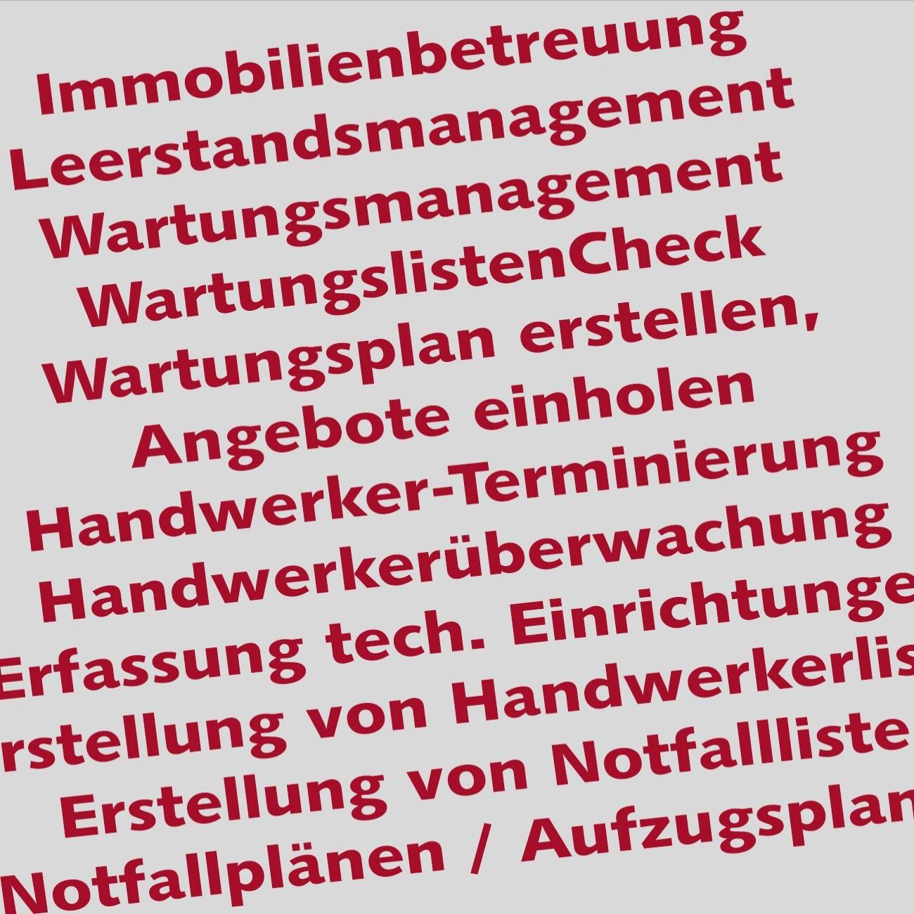 Wartungsmanagement · Wartungslisten Erstellung + Betreuung · Erstellung eines Wartungsplanes, Angebotseinholung, Terminierung der Handwerker · Erfassung der technischen Einrichtungen · Erstellung von Handwerkerliste, Notfallliste, Aufzugsplan,